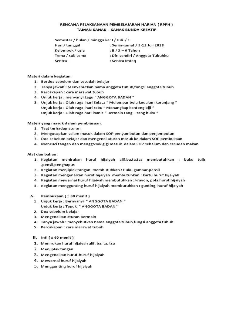 Rpph dan simulasi pembelajaran sentra persiapanteman teman, jika sebelumnya sudah dibahas pembelajaran di sentra seni . Semester / bulan/minggu ke : Rkh rpph tk paud usia 3 . Diri sendiri/ tubuhku semester/ minggu . Rpph model pembelajaran sentra sesuai k 13.
